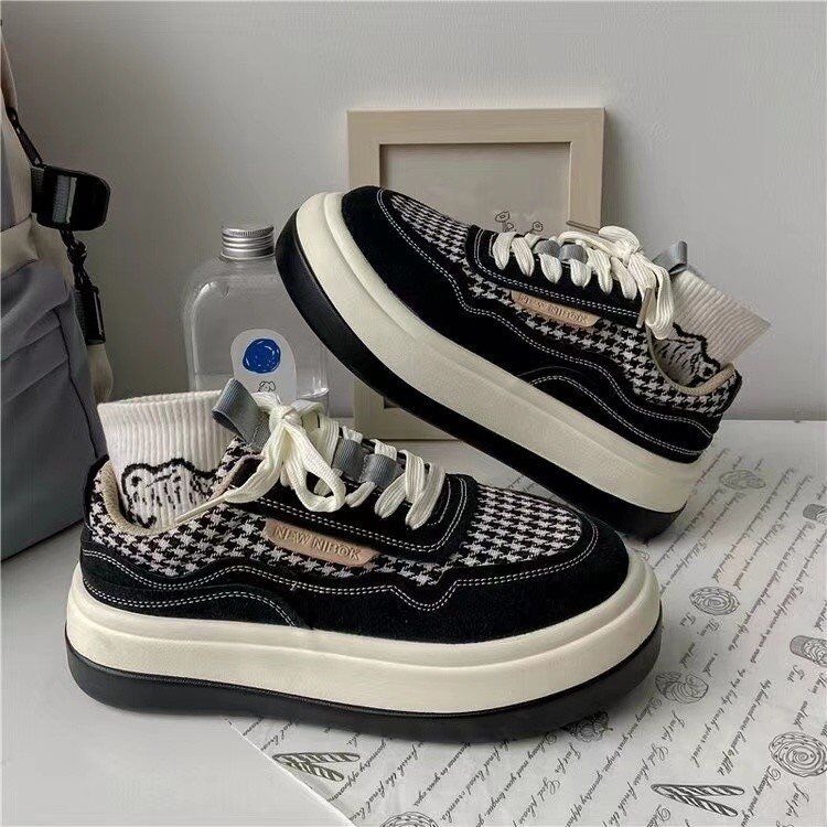 Giày thể thao sneaker nữ màu basic kem đen đế cao kiểu năng động học sinh đi học FLORA G81