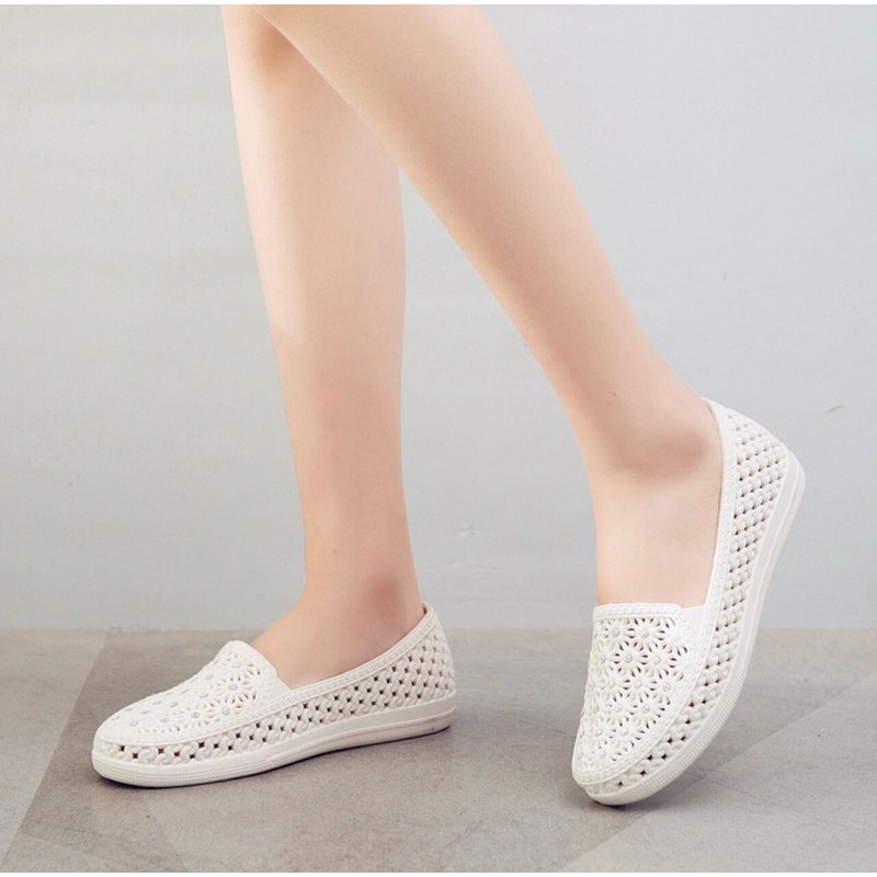 Giày Nhựa Mềm Trắng Dễ Thương Cho Nữ Phong Cách Nhẹ Nhàng