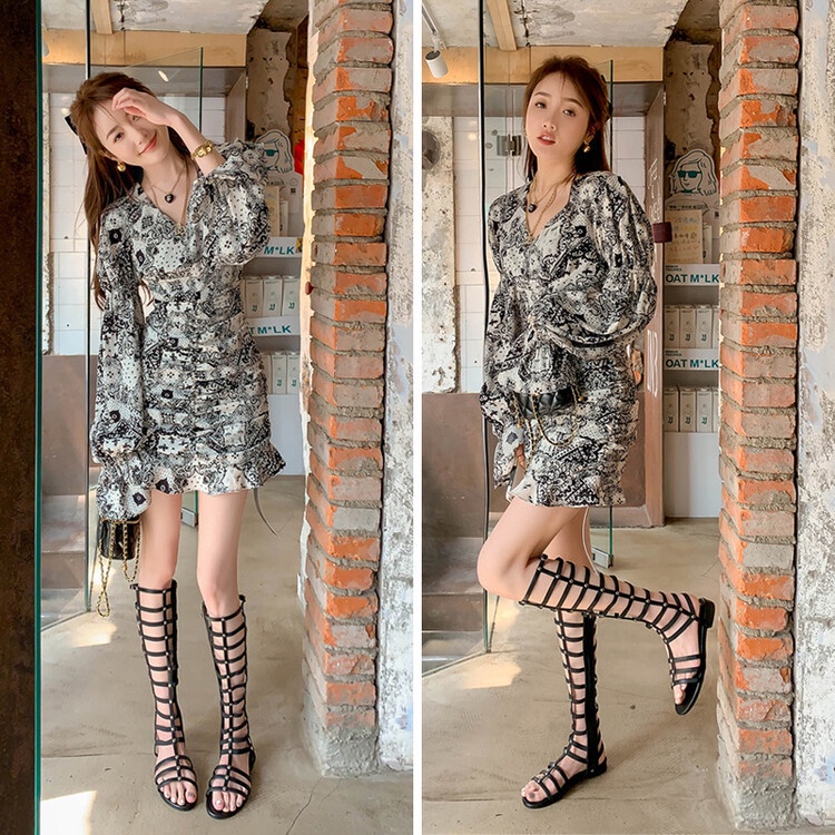 Giày sandal đế bằng cột dây cổ cao thời trang mùa hè cho nữ Size 35-43