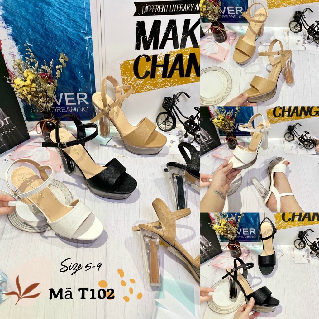 Giày Sandal Cao Gót Nữ 💥GIÀY CÔ DÂU - ĐI TIỆC💥 Đế Vuông 12 Phân Da Mờ T102
