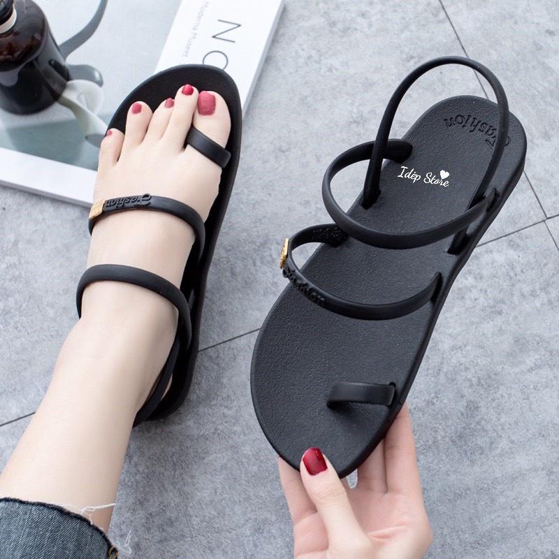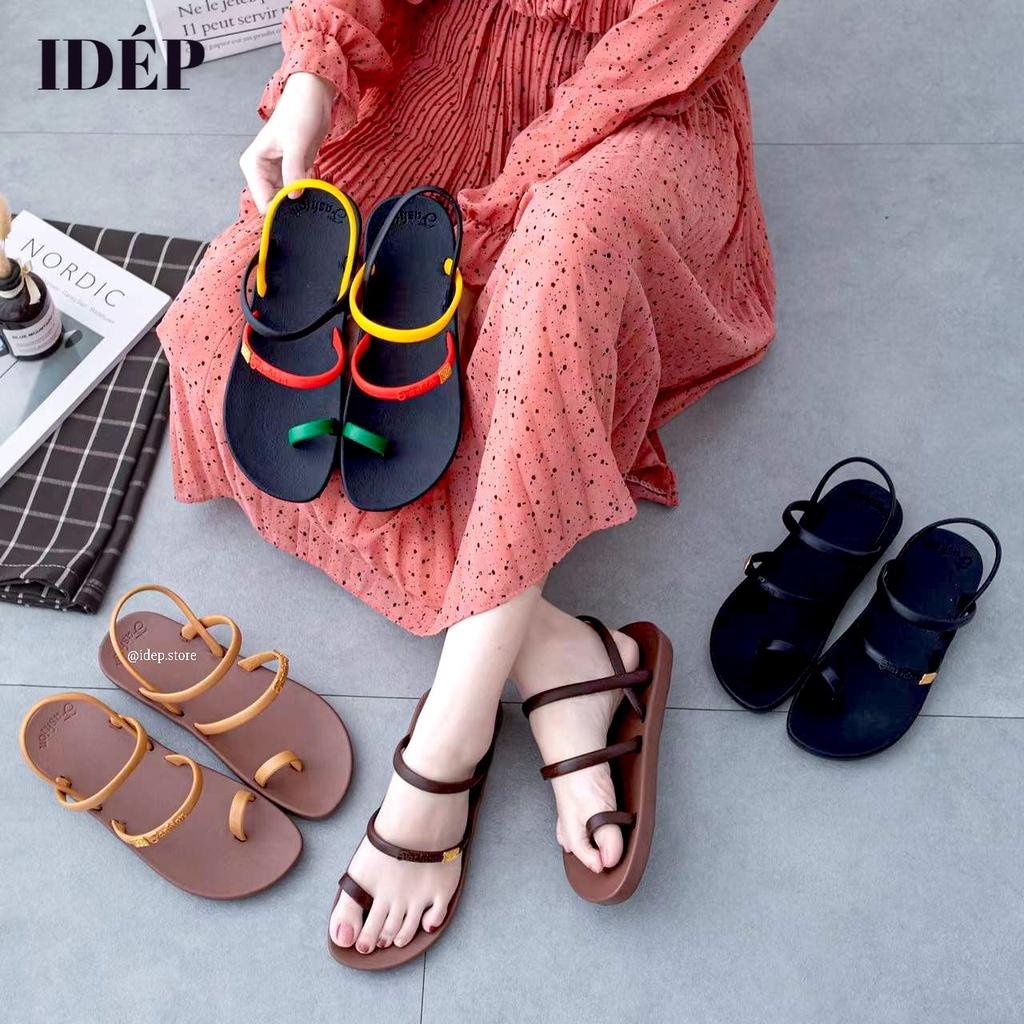 Giày sandal nữ xỏ ngón 2 quai nhựa giả da đế cao su đi mưa, đi học chống trơn siêu bền iDÉP GL063