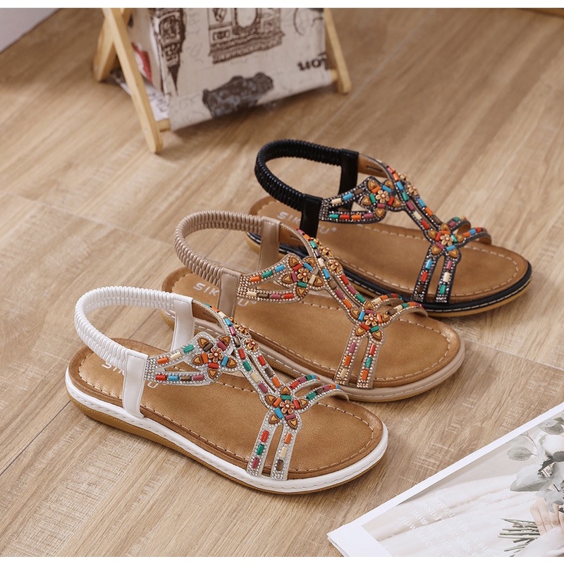 Giày sandal Siketu quai dây mảnh đính hạt xinh xắn, đế 3cm