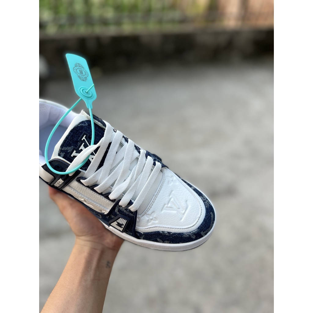 Giày Sneaker LV Trainer Xanh Than Cao Cấp Fullbox, Giày thể thao nam nữ xanh than êm chân