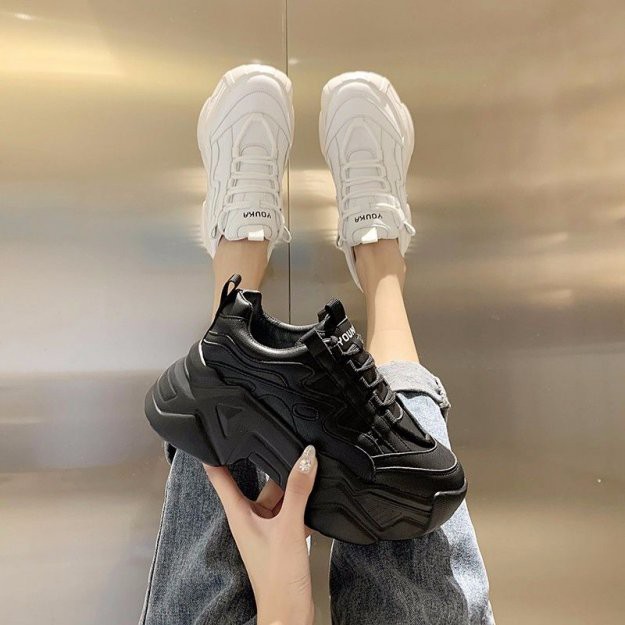 Giày sneaker nữ màu basic trắng đen đế cao kiểu năng động học sinh FLORA G42
