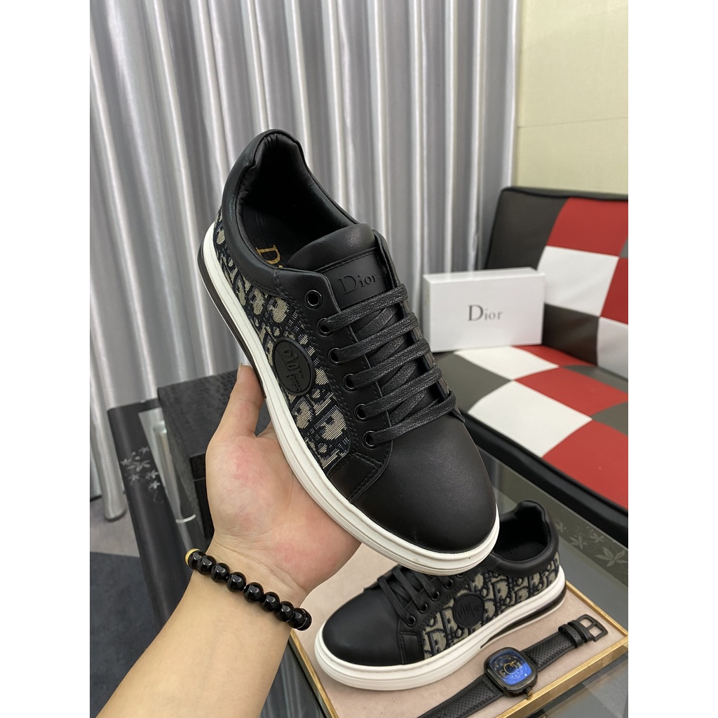 Giày sneakers nam da thật cao cấp DIOR CD thiết kế trẻ trung và hiện đại với họa tiết logo thương hiệu cách điệu bắt mắt