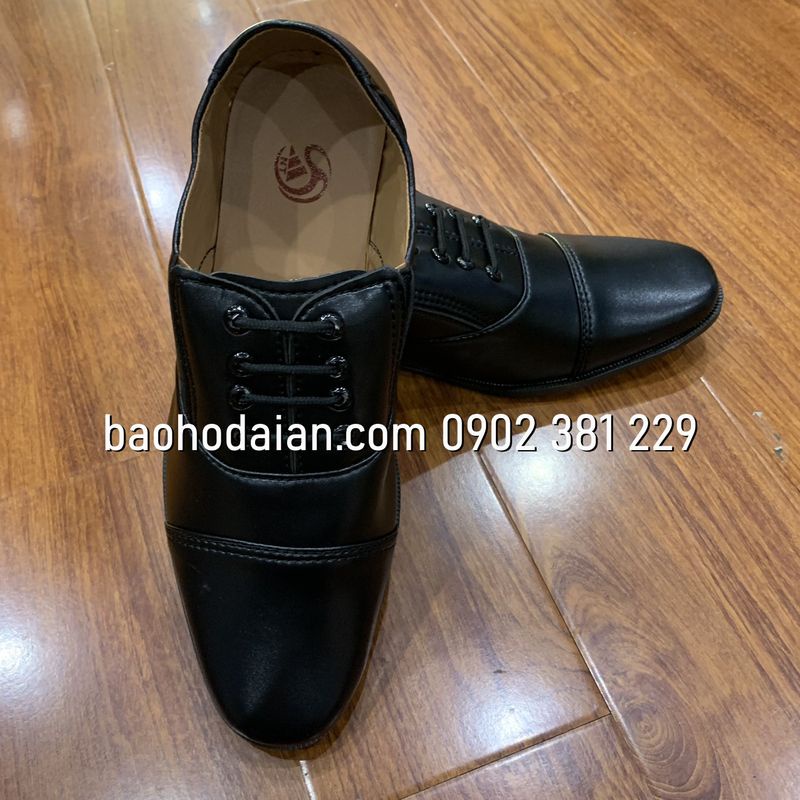 Giày da bảo vệ được làm theo đúng quy định, được sản xuất theo mẫu mã và kiểu dáng thuộc Tổng công ty 22 ❖ Giày được làm bằng chất liệu giả da màu đen tùy theo nhu cầu của từng công ty và đơn vị. Đế giày bằng chất liệu tổng hợp đảm bảo sự bền đẹp và chắc chắn. Giày da