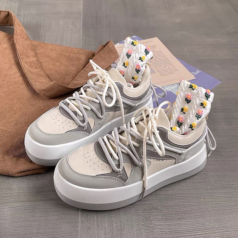 Giày thể thao sneaker nữ màu basic kem đen đế cao kiểu năng động học sinh đi học FLORA G81