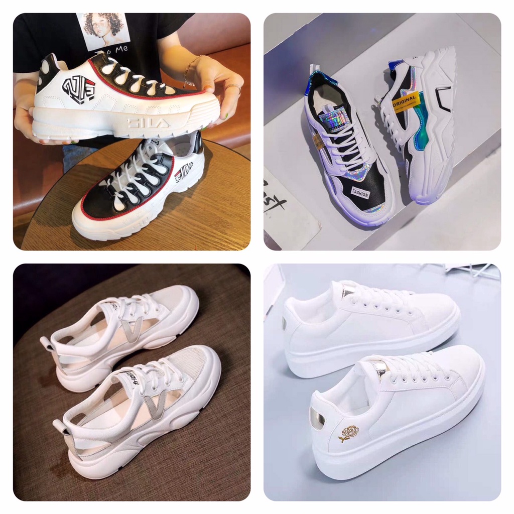 Giày sneaker nữ màu basic trắng đen đế cao kiểu năng động học sinh FLORA G42
