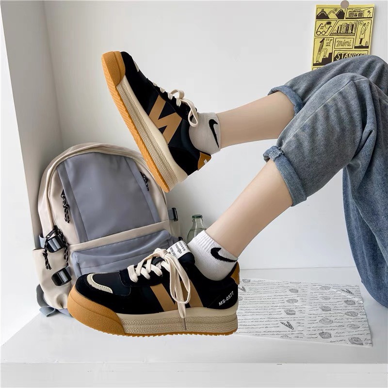 Giày thể thao nữ NN màu đen nâu chất liệu da độn đế cao 5 cm sneaker ulzzang hàn quốc đi học đi chơi đi làm đẹp 2022 ----------------------------------- * Thông tin sản phẩm - Màu sắc: Đen/Nâu - Chất liệu: Da - Kích thước: 35 36 37 38 39 - Sản xuất tại : Trung Quốc -