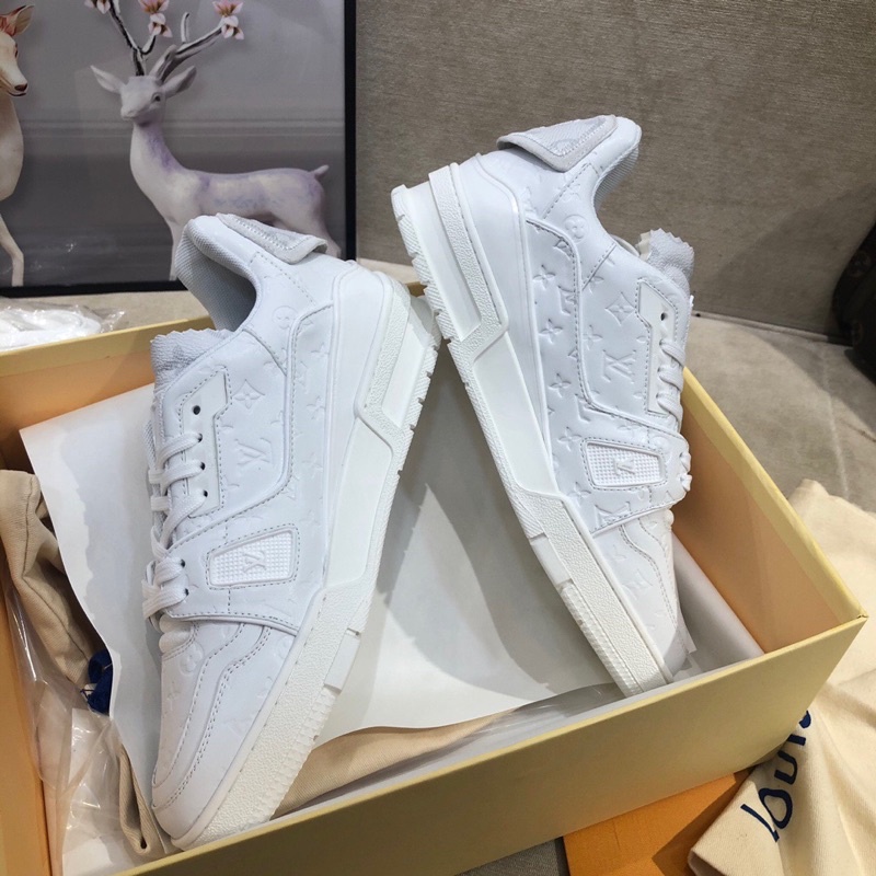 Giày thể thao unisex màu trắng chất liệu da thật cao cấp thương hiệu Louis Vuitton LV