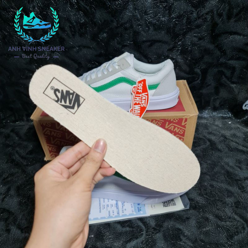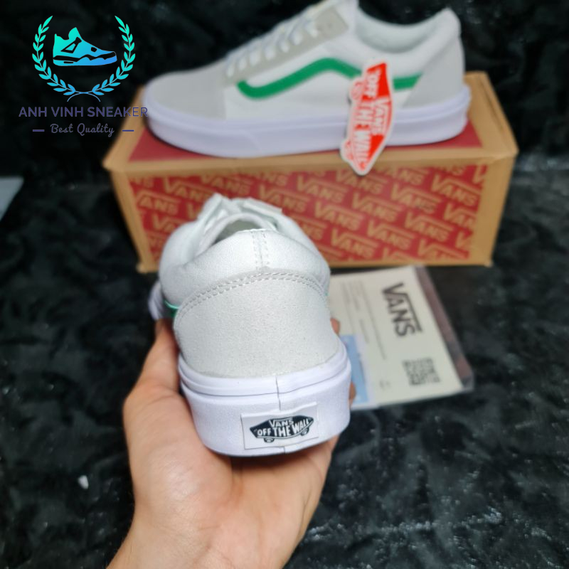 Giày Vans Old Skool White Green Trắng Sọc Xanh Lá Nam Nữ Cổ Thấp