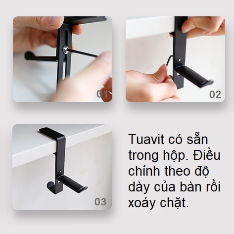Móc treo gắn bàn không chỉ phục vụ treo tai nghe mà còn có thể dùng như một móc treo đa năng 🔹 Sản phẩm làm từ thép sơn tĩnh điện tạo cảm giác sang trọng cho không gian 🔹 Phần treo có đệm làm từ da mềm mại giúp tai nghe không bị trầy xước và tạo tiếng động 🔹 Có 02 chỗ để treo tai nghe và các đồ vật khác như chìa khóa, sạc điện thoại, túi cặp nhỏ >> Tiết kiệm diện tích và không gian phòng. Tạo không gian thoáng để tập trung làm việc. 🔹 Móc treo cố định treo những đồ vật quan trọng như chìa khóa, đồng hồ,... để dễ nhớ. --------------------------- - Kẹp bàn dày: 1,5cm-5cm - Có tuavit chỉnh ốc đi kèm - Đầy đủ các đệm Phù hợp với các bạn đang dùng tai nghe chơi game, nghe nhạc, thư giãn văn phòng, học sinh sinh viên và các nhu cầu treo đồ vật. Shop đã đóng gói cẩn thận, cam kết hàng như hình, đầy đủ các bộ phận trước khi khi gửi đi. #giadotainghe #giadotaingheduoiban #tainghe #moctreotainghe #moctroeganban