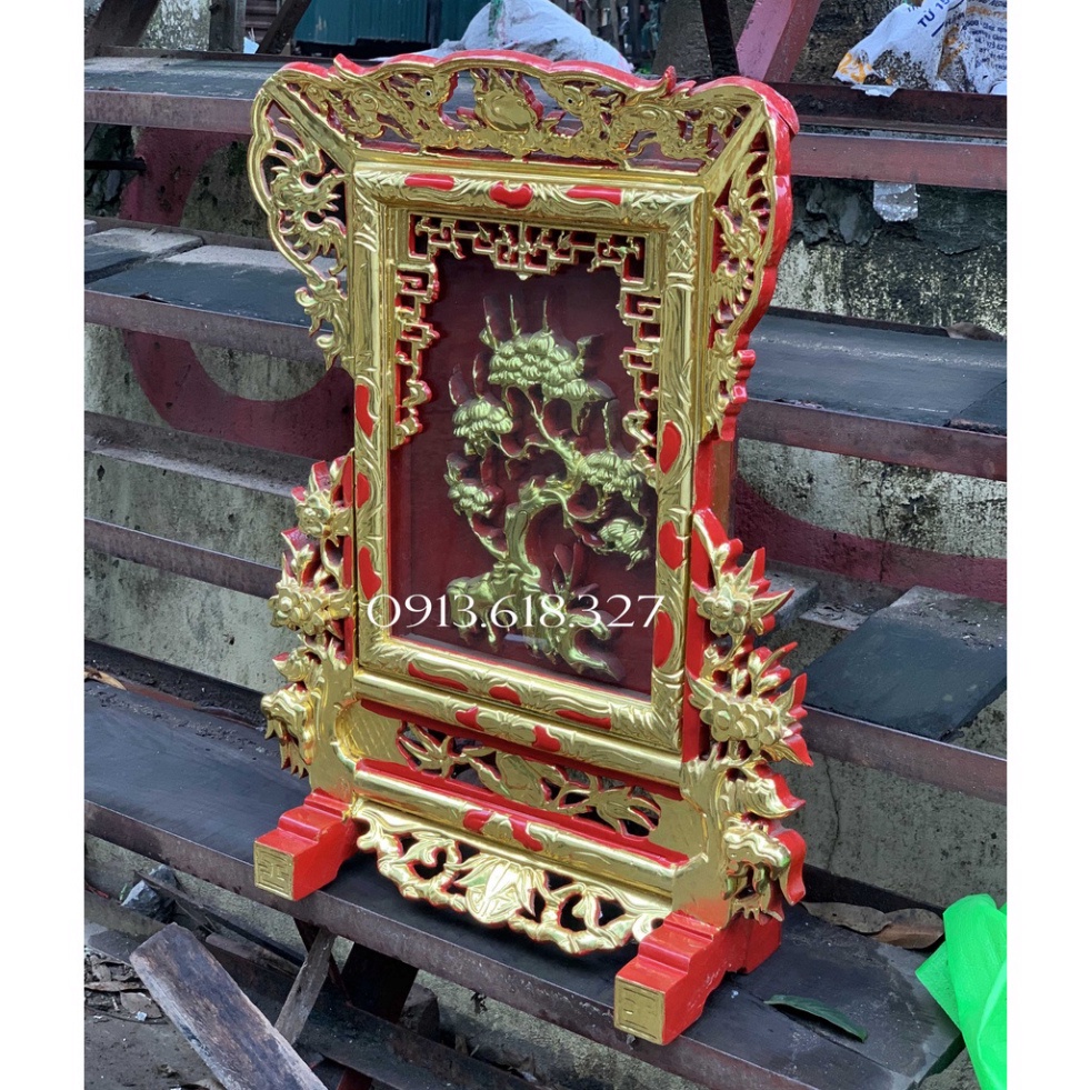 Giá Gương Thờ Cây Tùng Sơn Son Gỗ Mít Cao 71cm