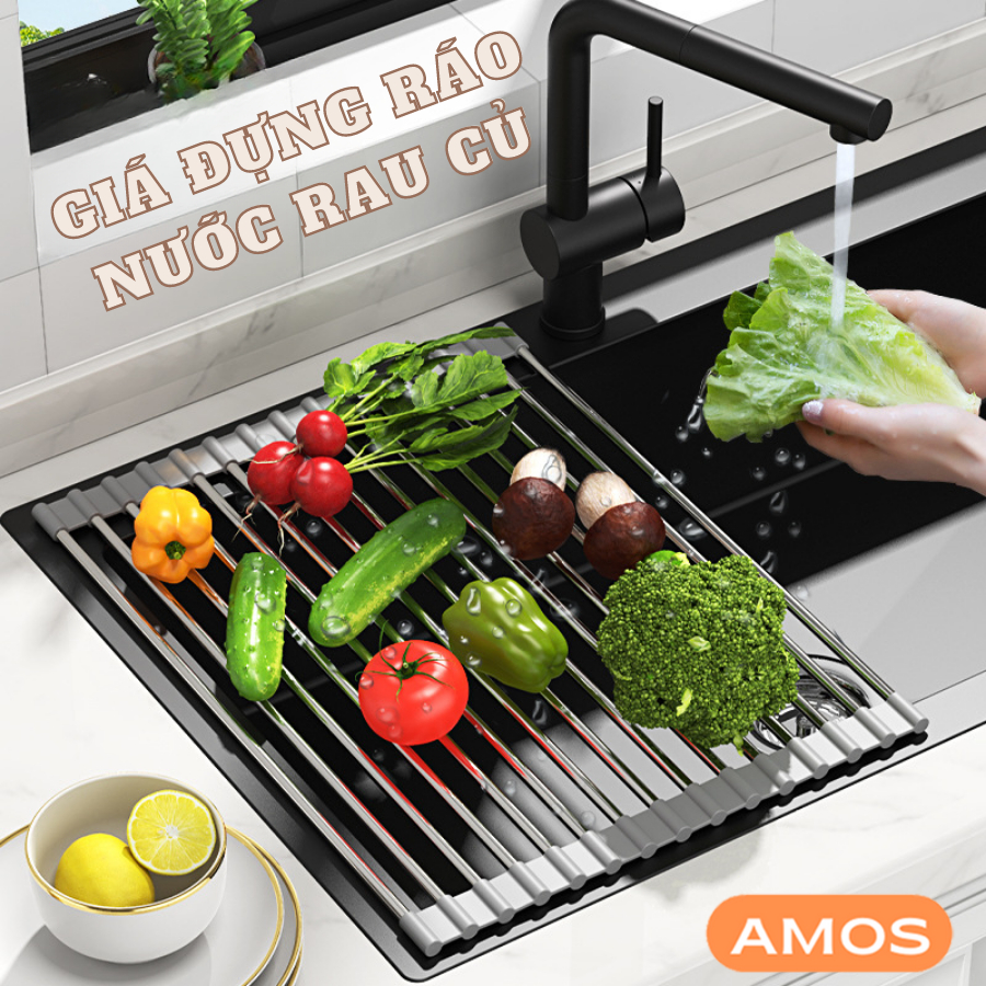 Giá inox gác bồn rửa chén đựng bát đĩa tiện lợi, Giá đựng hoa quả đa năng, ráo nước có thể điều chỉnh tùy ý