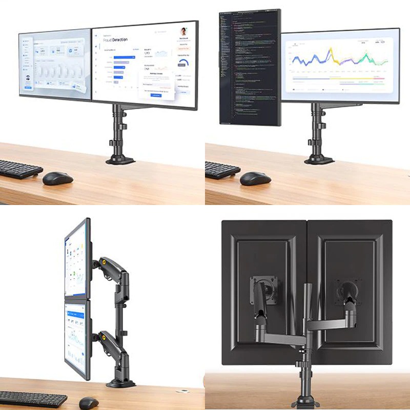 Giá treo 2 màn hình máy tính NB-H180 22-32 inch, arm màn hình kép xoay 360 độ, tải 12kg, xếp trên dưới