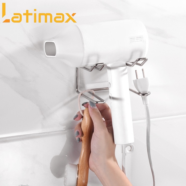 Giá treo Máy sấy tóc khung Inox đế trong Latimax dán tường nhà tắm tiện lợi bền đẹp