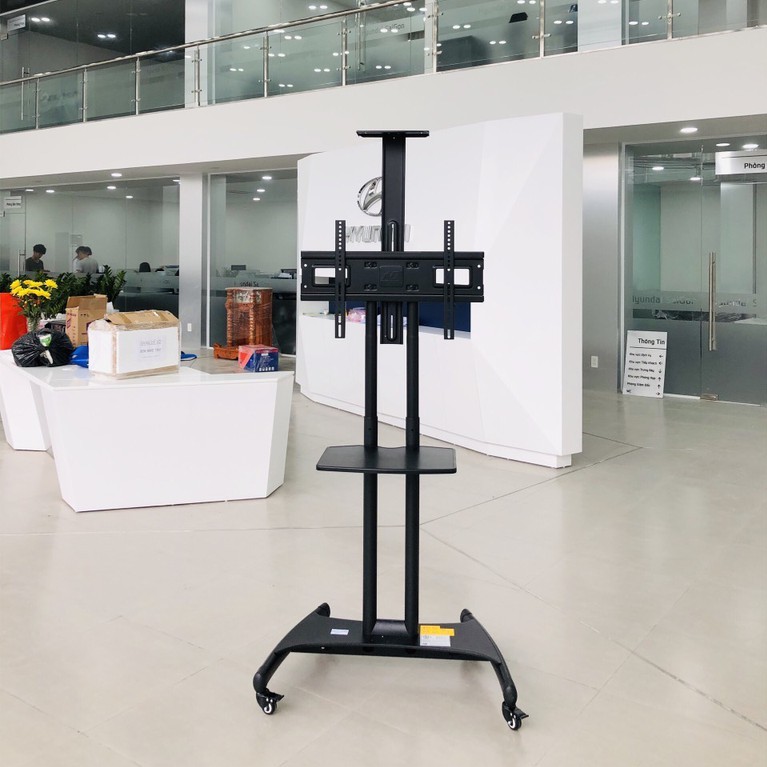 - Giá treo tivi di động AVA1500-60-1P được thiết kế rất tinh tế, tiện dụng và cơ động để có thể sử dụng cho các tivi có trọng lượng lên đến 45 kg, lắp được màn hình phẳng tử 32 đến 65inch với 4 bánh xe có chốt phanh đã được lắp đặt sẵn. - Giá treo tivi di động mới nhất hiện nay dành cho sự kiện hội chợ triển lãm, phòng họp hội nghị, bán hàng lưu động ngoài trời, phòng khách/phòng giải trí gia đình, nhà hàng tiệc cưới. ➡ THÔNG SỐ KỸ THUẬT GIÁ TREO TIVI DI ĐỘNG NB-AVA1500-60-1P + Dành cho các màn hình tivi có kích thước từ (32" đến 65") + Tải trọng: 45 kg. + Màu: Đen nhám. + Độ cao điều chỉnh TV: 1m – 1,6m. + Cân nặng : 21 kg. + Đóng gói: 986 x 650 x 121 mm HOẶC 620 x 940 x 130 mm. + Cáp tích hợp bên trong cột + Có khay để Camera + Tiêu chuẩn tâm lỗ VESA từ 100x100 đến 600x400. Phù hợp với hầu hết các bảng TV phẳng hiện tại: 100 x 100mm, 200 x 200mm, 400 x 200mm, 400 x 400mm, 600 x 400mm. + Thiết kế mô đun cho phép tháo gỡ nhanh chóng để lưu trữ hoặc vận chuyển. + Linh hoạt lắp đặt dễ dàng và tiện lợi. + Tiết kiệm không gian hoàn hảo cho vị trí của bạn. + Sản phẩm được đóng gói khéo léo và kết cấu hộp cho bạn để tiết kiệm rất nhiều không gian và chi phí vận chuyển. + Hoàn toàn thuận tiện với hệ thống quản lý dây tích hợp. + Xuất xứ: Trung Quốc.
