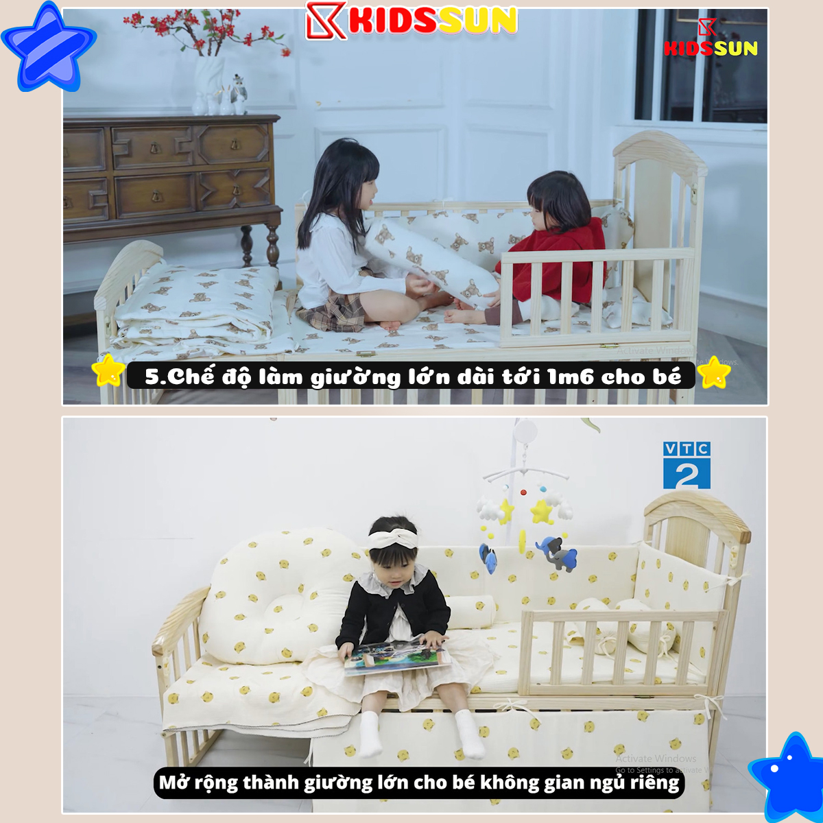 Giường Cũi/Nôi Cũi Đa Năng Cho Bé 6 Chế Độ Cỡ Lỡn Kích Thước RxDxC (67x120x102) Lọt Lòng 62x114-Combo phụ kiện có thể lựa chọn :-Mình nôi cũi-Nôi cũi + đệm bông ép + ga chun cotton bọc đệm -Nôi cũi + đệm bông ép + bộ 4 tấm đệm quây xung quanh + ga chun cotton bọc đệm -Nôi cũi + đệm bông ép + bộ 4 tấm đệm quây xung quanh + ga chun cotton bọc đệm + chăn cotton trần bông + gối chống lõm đầu + gối chặn cho béQuà Tặng: Bộ màn mùng + khung treo + bộ 4 bánh xe có khoá 1 - Vì sao bố mẹ nên mua cũi cho bé sử dụng trong những năm tháng đầu đời? - Bé được ngủ riêng trong cũi từ sớm sẽ không bị quện hơi mẹ, không phụ thuộc vào người lớn, tránh thói quen xấu như liên tục đòi bé, bú lặt vặt, bám mẹ không rời - Khi bé lớn bắt đầu lật, bò, đứng, vịn hay chơi đùa nhìu hơn thì chiếc cũi cho bé sẽ là trợ thủ đắc lực của bố mẹ, vừa đảm bảo an toàn cho bé vừa rèn luyện được thói quen ngủ độc lập trong chiếc cũi xinh xắn của riêng mình. - Chiếc cũi cho bé còn giúp mẹ thảnh thơi hơn, vừa chăm sóc gia đình vừa chăm con một cách khoa học. Củi cho bé được trang bị những chức năng tiện lợi như chế độ bập bênh ru bé ngủ, chế độ bánh xe có thể đẩy bé đi khắp nhà theo chân của mẹ. Giờ đây việc trông con sẽ dễ dàng hơn nhờ chiếc cũi em bé đa năng này - Ngoài ra chiếc cũi em bé còn có thể chuyển đổi thành giường lớn và ghép sát vào giường của bố mẹ, bố mẹ sẽ tiện hơn trong việc chăm sóc bé khi ngủ đặc biệt là vào ban đêm. - Một điểm cộng thêm cho chiếc cũi trẻ em là được thiết kế đẹp mắt kết hợp với màu gỗ tự nhiên tạo nên tổng thể hài hoà có thể trang trí cho không gian căn nhà - Hơn nữa, thời gian sử dụng cũi trẻ em thường kéo dài từ 5 – 10 năm, rất tiết kiệm, an toàn, tiện lợi. 2 - Sự lựa chọn hàng đầu cho mẹ và bé * Nôi cũi đa năng 6 chế độ đồng hành cùng con từ 0 tháng tuổi đến tận 12 tuổi. + Chế độ giường 1 sâu 35cm dành cho bé từ 0 – 6 tháng tuổi Ở độ tuổi còn sơ sinh thì con chủ yếu nằm ngủ và chơi với mẹ, chính vì vậy nên sử dụng nôi cho bé ở chế độ này để thuận tiện cho việc chăm bé, dễ dàng thay tã. Ở chiều sâu này chúng ta tận dụng được ngăn dưới của nôi để đựng các vật dụng cần thiết cho bé khi cần. Có cửa đóng mở dễ dàng bằng nút bấm. + Chế độ giường 2 sâu 50cm dành cho bé từ 6 – 12 tháng tuổi Bé với tháng tuổi này đã tinh nghịch hơn và bắt đầu tập lật, tập bò nên bố/mẹ điều chỉnh nôi ở nấc này. Sẽ yên tâm hơn cho bé thoải mái tập lật trong nôi nhé. + Chế độ giường 3 sâu 65cm dành cho bé từ 12-36 tháng tuổi Ở độ tuổi trên 1 năm này bé đã lớn và đang trong tuổi tập đứng, tập đi, thích khám phá, nghịch nghợm nên các mẹ hạ chiếc nôi gỗ ở chế độ 3 để phù hợp với chiều cao của bé, giúp bé chơi trong nôi thoải mái hơn. + Chế độ ghép đôi giường với bố mẹ Có thể điều chỉnh chiều cao của nôi đa năng linh hoạt từ 28cm đến 60cm. Giúp mẹ có thể quan sát bé yêu mỗi tối, ngắm nhìn được bé ngủ say và ngon giấc. + Chế độ giường cũi lớn cho bé từ 3 tuổi trở lên Chức năng đặc biệt của chiếc nôi cho bé này là đem đến sự tiện lợi và tiết kiệm về lâu dài: Có thể kéo thành giường dài lên đến 1m6 để phù hợp cho bé nằm một cách thoải mái. + Bàn làm việc, bàn học khi bé lớn Một chiếc bàn xinh xắn và đủ chắc chắn sẽ được chuyển khi bé lớn. * Hiện nay ở Việt Nam, nôi cho bé sơ sinh với chất liệu gỗ được ba mẹ ưa chuộng lựa chọn hơn hết bởi sự an toàn và sang trọng, lựa chọn gỗ thông nhập khẩu 100% từ New Zealand đạt tất cả tiêu chuẩn an toàn. – Có độ cứng cao, kết cấu cực kỳ chắc chắn. – Gỗ tự nhiên có tuổi thọ cao vì vậy sản phẩm rất bền và an toàn. – Có khả năng chống côn trùng, mối mọt. – Khả năng chịu ẩm tốt, ít bị nứt nẻ khi tiếp xúc với ánh mặt trời. – Đặc biệt, màu sắc tự nhiên đẹp đẽ, sang trọng và bắt mắt. * Nôi cũi được được thiết kế theo tiêu chuẩn Châu Âu, đảm bảo an toàn về các thông số như khoảng cách các khung cũi 5.5cm tránh trường hợp bé bị kẹt tay, độ tiện lợi khi có thể linh hoạt biến thành giường ngủ, bàn học, nôi bập bênh. 3 - Tiêu chí khi chọn lựa nôi cũi, giường cũi cho bé - Kích cỡ: Bố mẹ nên chọn những loại nôi cũi, giường cũi cho bé không nên quá lớn cũng không nên quá nhỏ phù hợp nhất cho bé sử dụng cho đến khi lớn, thì kích thước chuẩn của là sự lựa chọn hoàn hảo nhất. - Thiết kế: nôi cũi cho bé của chúng tôi được thiết kế đa năng thông minh, tiện ích mà những loại cũi khác ko đáp ứng được, bé có thể sử dụng đến năm 12 tuổi. - Tiêu chuẩn an toàn: phải đảm bảo các yếu tố như các mép, góc cạnh không được sắc nhọn, khoảng cách giữa các thành vừa phải không để bé lọt tay, chân qua khe hở, cũi phải vững chắc cân bằng không lắc lư, vật liệu 