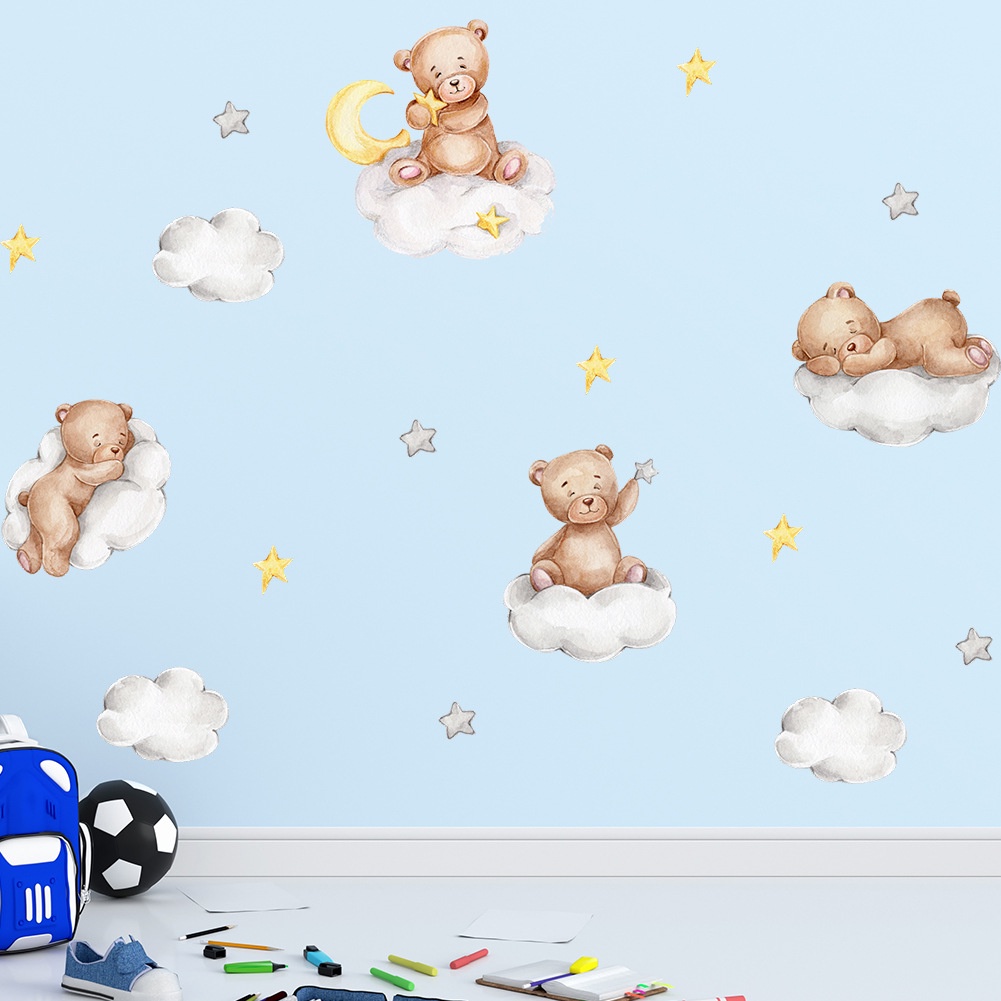 Giấy Dán Tường Họa Tiết Hoạt Hình Đám Mây / Gấu / Ngôi Sao / Mặt Trăng Trang Trí Phòng Bé