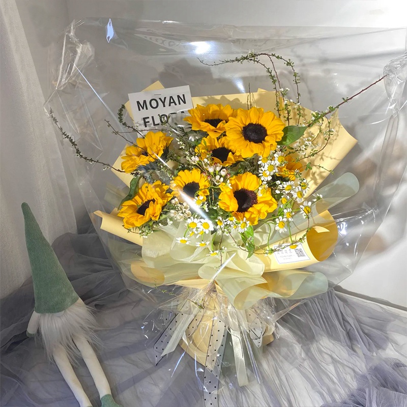 Các tính năng: 1. Chất liệu Cellophan: Bề mặt nhẵn và sáng, không có mùi, chống thấm nước và chống bụi. 2. Chi tiết sản phẩm: Hai kích thước có sẵn. Bao bì nhiều lớp giúp hoa không dễ bị hư hại trong quá trình vận chuyển. 3. Bao bì đẹp: Được sử dụng để đóng gói hoa, s