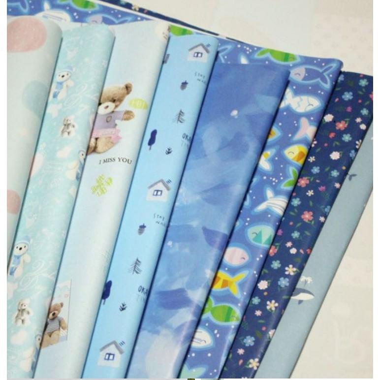 Giấy gói quà nền nhiều họa tiết kt 50x70cm xấp 5 tờ