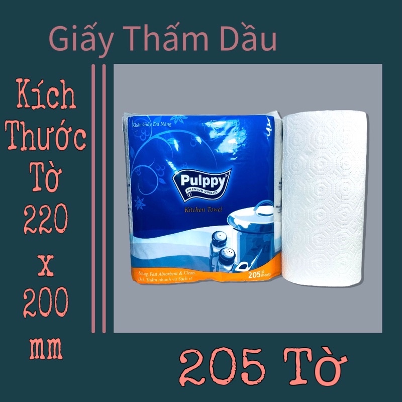 Giấy Thấm Dầu Mỡ Pulppy 205 Tờ 2 lớp dày, độ thấm cao, thân thiên với môi trường Giấy Thấm Dầu Mỡ Đồ Chiên 205 Tờ Pulppy 220x200mm Giấy dùng để lau bếp, thấm hút dầu mỡ, giấy vệ sinh đa năng. Kích thước tờ 220x200mm x2 Lớp siêu thấm Nhà Mesy cũng dùng hay loại này để