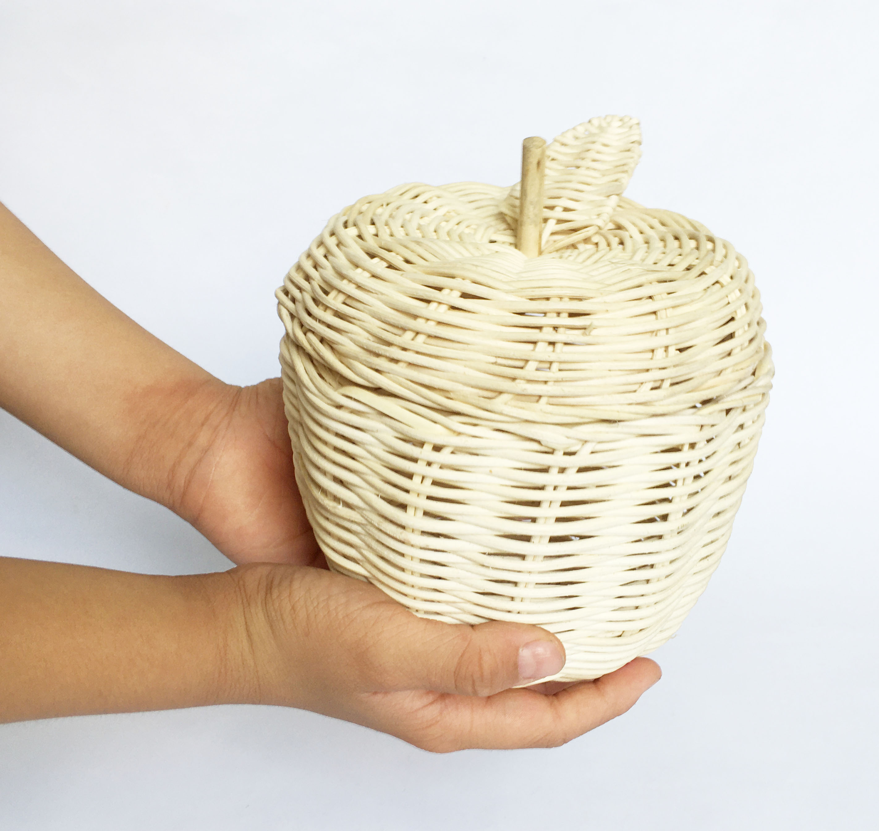 Giỏ đựng đồ hình quả táo để bàn bằng mây tự nhiên dùng trang trí, đựng đồ, phụ kiện chụp ảnh, decor KT 14x14cm