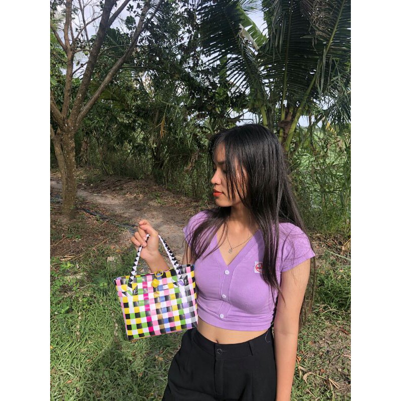 Sản phẩm do shop mình tự thiết kế và đan tỉ mỉ size như ảnh 20 ngang x18 cao x10 rộng cm Túi có thể đựng ví nhỏ, điện thoại, son, với cả chai nước nhỏ, vô cùng tiện dụng