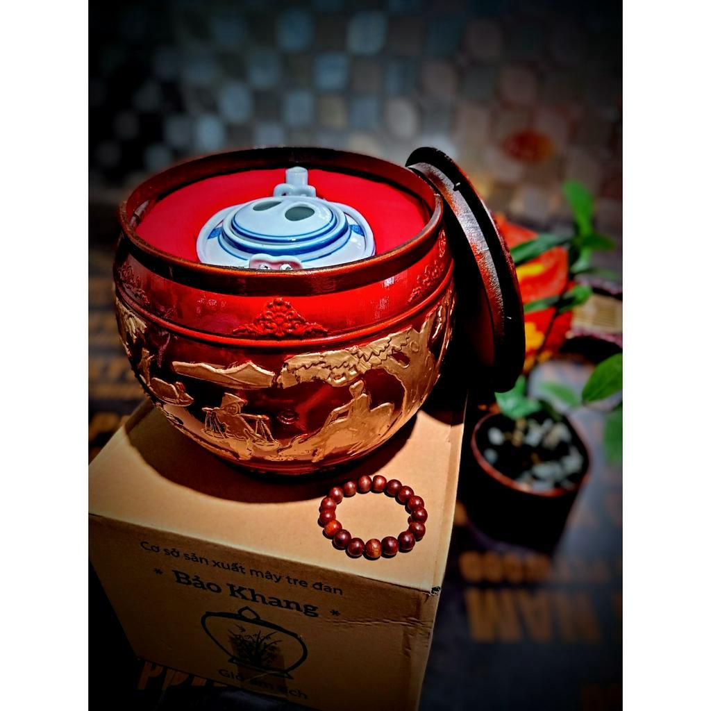 Giỏ ủ ấm tích 1,5L thương hiệu Bảo Khang _Công dụng: Giữ ấm tích trà, ủ ấm giữ nhiệt tích nước được lâu giờ. _Bao ủ ấm tích trà được bọc vải gấm, được làm thủ công bằng chính tay những người thợ làng nghề Phú Vinh - Chương Mỹ - Hà Nội _Vỏ ấm được tô vẽ thủ công, đẹp theo thời gian. _Nắp và ruột bao ấm được nhồi bông gòn và bọc lót vải ấm đỏ giữ nhiệt siêu lâu vô cùng sang trọng. _Họa tiết Trâu cày, phong cảnh Đồng Quê bản sắc văn hóa người Việt Nam. _Họa tiết được tô đậm nhũ vàng óng ánh nổi bật vô cùng bắt mắt. _Có bán sỉ giá vô cùng ưu đãi....