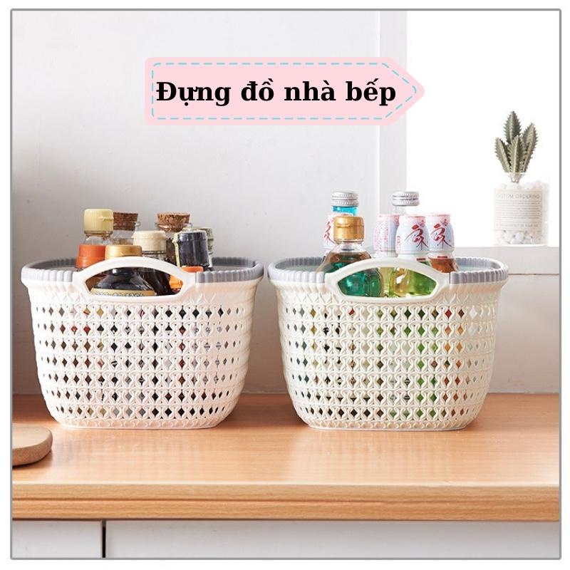 Giỏ nhựa đựng đồ đa năng Rổ nhựa chữ nhật giả đan mây có quai xách