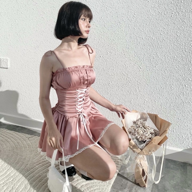 GILL BABY | Đầm váy xoè giả corset kèm quần phối ruy băng tôn dáng đi chơi hẹn hò
