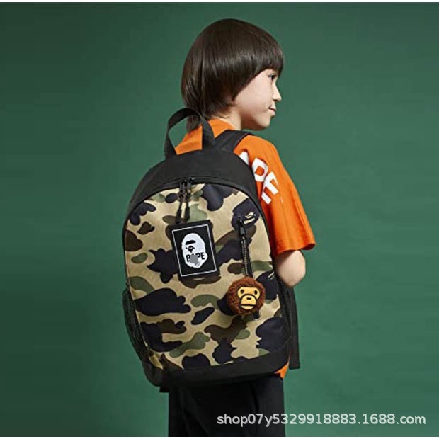 Ba lô có thể chứa tạp chí A4, in hình rằn ri cổ điển và logo đầu ape, túi ngang phía trước mang đầy cảm giác thiết kế, dây đeo vai có thiết kế chống trượt và có thể điều chỉnh theo chiều cao, lưới nhỏ Túi lưu trữ bên hông có thể để đèn cốc nước rất tiện lợi. Đây là mộ