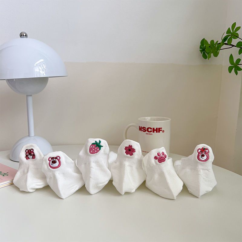 Hàng Có Sẵn Vớ Thuyền Màu Trắng In Hình Gấu Dâu Tây Phong Cách Mori Nhật Bản Hàn Quốc Dễ Phối Đồ Hợp Thời Trang Cho Nữ