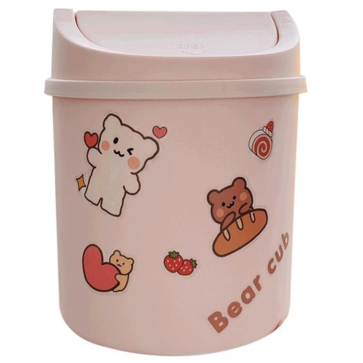Hùng rác mini nhựa nắp lật để bàn học văn phòng cao cấp dễ thương tặng hình dán