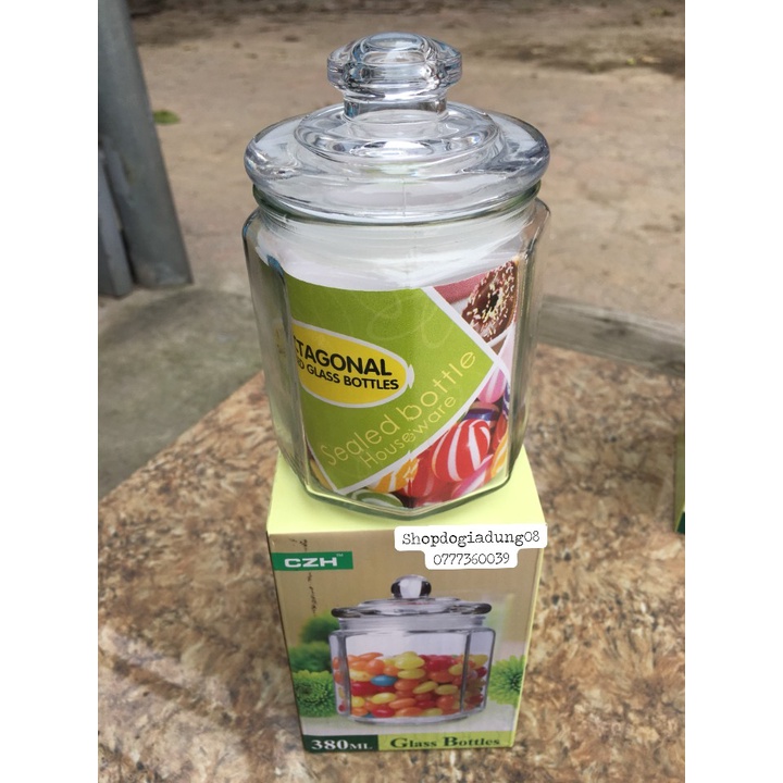 HŨ - LỌ THỦY TINH ĐỰNG GIA VỊ CÓ GIOĂNG CAO SU HÌNH LỤC GIÁC DÀY DẶN