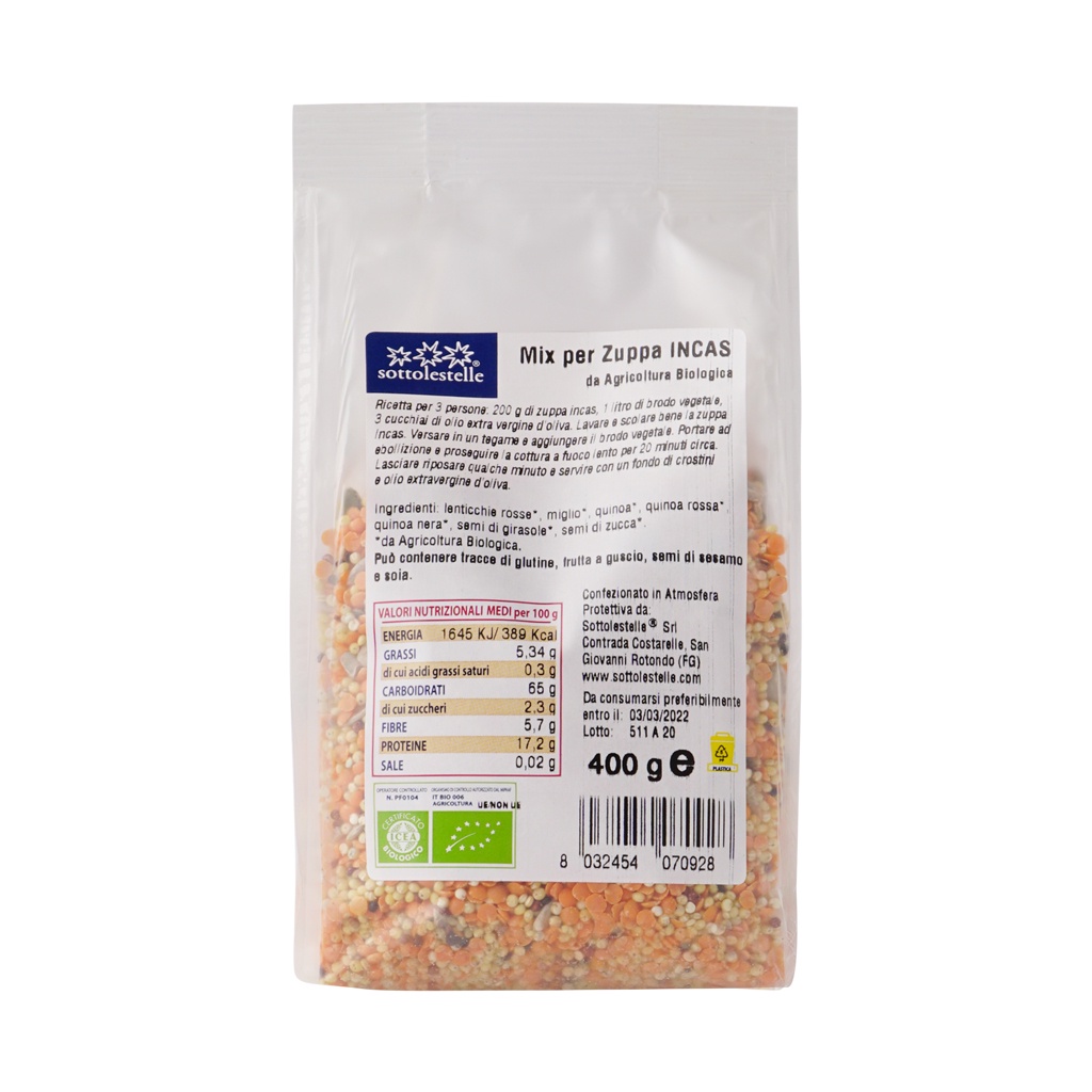 Xuất xứ : Sottolestelle – Ý HSD : 24 tháng từ ngày sản xuất Chứng nhận hữu cơ Châu Âu Chứng nhận hữu cơ ICEA Vegan Non GMO Thành phần : Hạt diêm mạch trắng hữu cơ , diêm mạch đỏ hữu cơ , diêm mạch đen hữu cơ ,hạt kê hữu cơ đã bóc vỏ, đậu lăng đỏ hữu cơ đã bóc vỏ , hạt