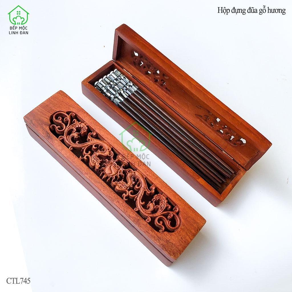 Hộp đựng đũa gỗ Hương tự nhiên_Chạm khảm tỉ mỉ_Hoa văn đa dạng