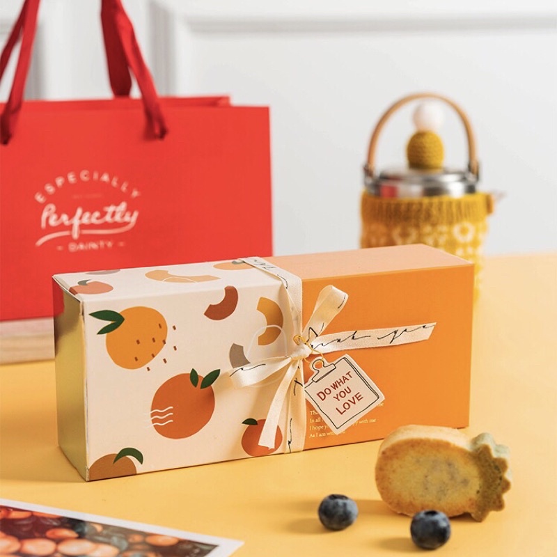 Hộp Đựng Bánh Dứa Bánh Quy Hình Chữ Nhật Hoạ Tiết Màu Cam - KAT Official Storea