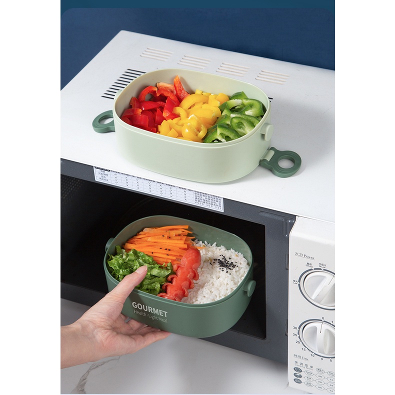 Hộp Đựng Cơm 2 Tầng 2 ngăn Lúa Mạch Tặng Kèm Bộ Thìa Nĩa