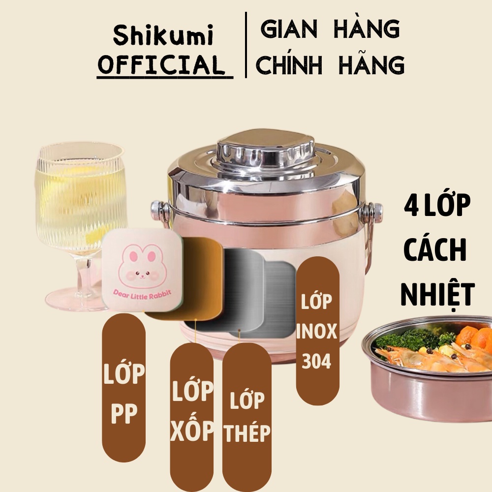 Hộp đựng cơm giữ nhiệt 1500ml Shikumi Cặp lồng inox đựng cơm giữ nhiệt full inox 304 hình cà men Dear Bear - Rabbit