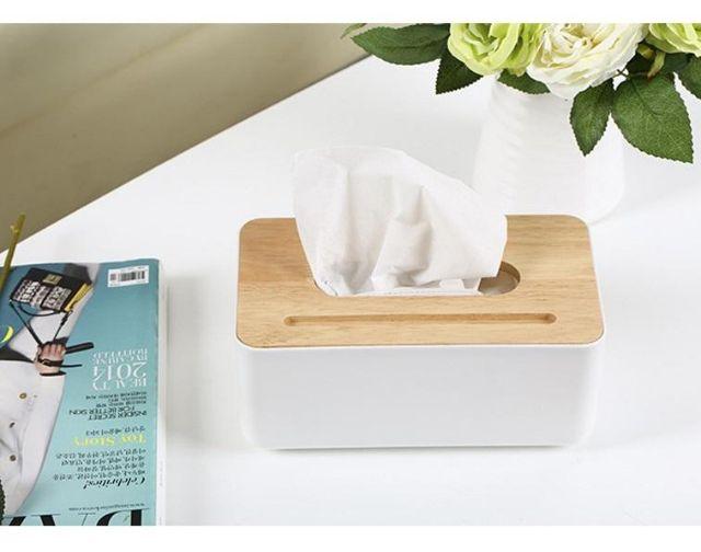 Thông tin sản phẩm - Hộp đựng khăn giấy bằng nhựa chữ nhật nắp gỗ phù hợp sử dụng trong gia đình, khách sạn - Kích thước lớn có thể chứa hầu hết các hộp khăn giấy chữ nhật, dễ dàng t...
