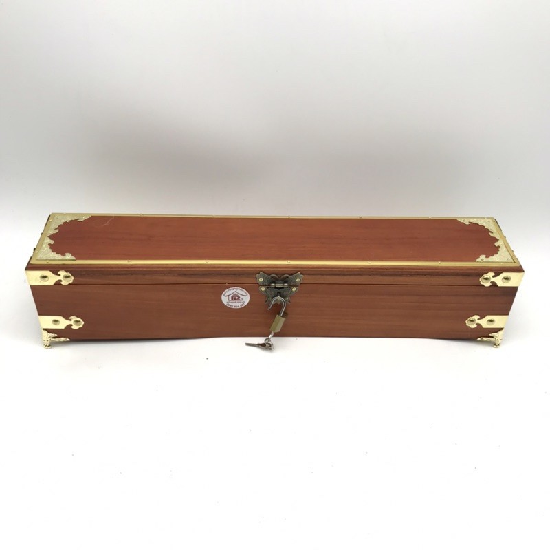 Hộp đựng sắc phong bằng gỗ Chất liệu. gỗ hương Kích thước dài 48cm. rộng 12cm. cao12cm Hộp được thiết kế rất tinh tế với các viền gân bằng đồng. bên trong được dán vải vàng hoặc nhung đỏ. đen tuỳ theo yêu cầu của khách hàng. được trang bị khoá chìa. hoặc khoá số theo yêu cầu của khách hàng. Hộp được dùng để đựng sắc phong. hoặc các vật dụng đảm bảo cho vật đựng được an toàn và bền đẹp