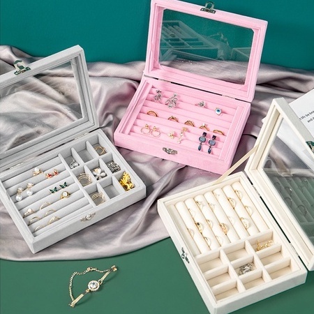 Hộp đựng trang sức, nhẫn, khuyên tai, dây chuyền, lắc tay bọc nhung nhiều màu Mee Store - O011