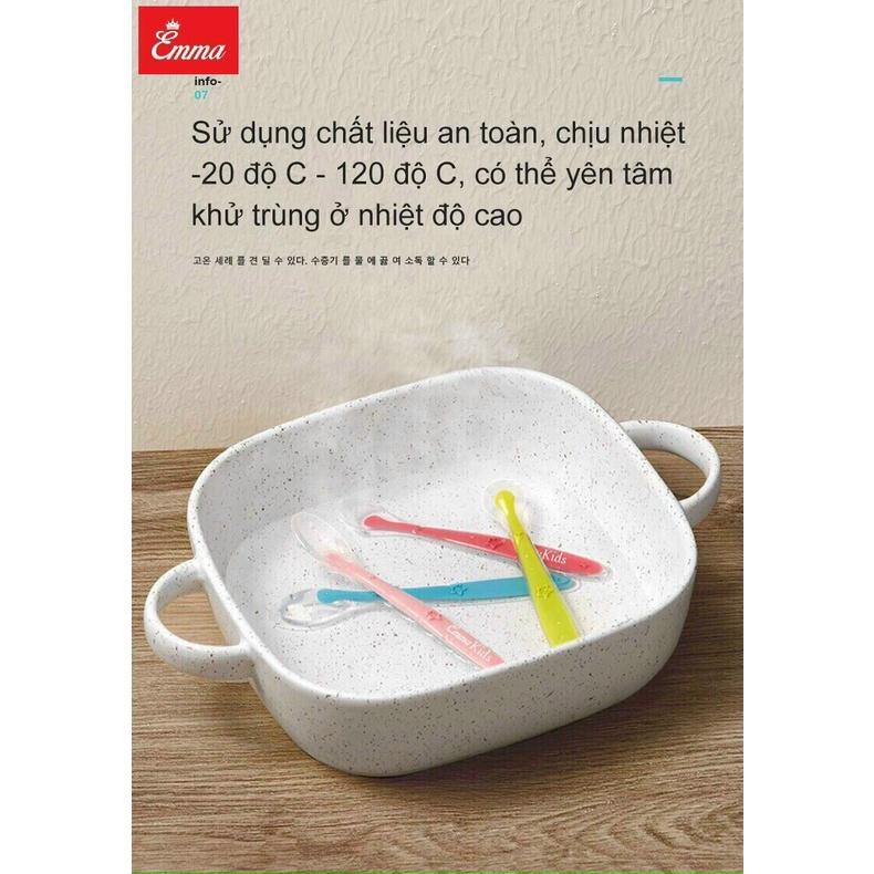 Hộp 2 thìa ăn dặm silicone siêu mềm Emma Kids cao cấp cho bé