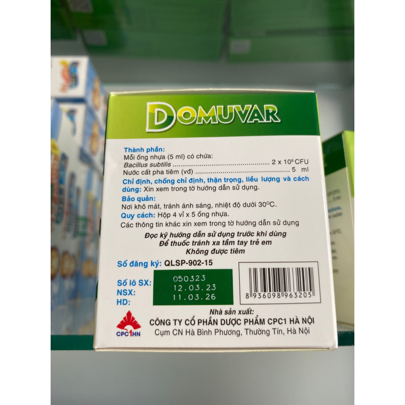 Hộp 20 ống men vi sinh Domuvar bổ sung bào tử lợi khuẩn đường ruột