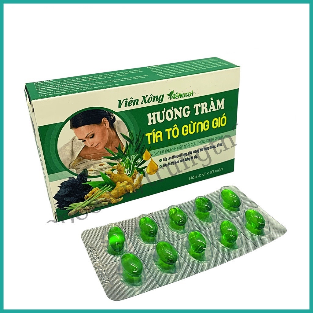 Hộp 20 Viên xông Natural Hương Tràm Tía Tô Gừng Gió - xông khi cảm cúm, xông sát khuẩn mũi họng ...