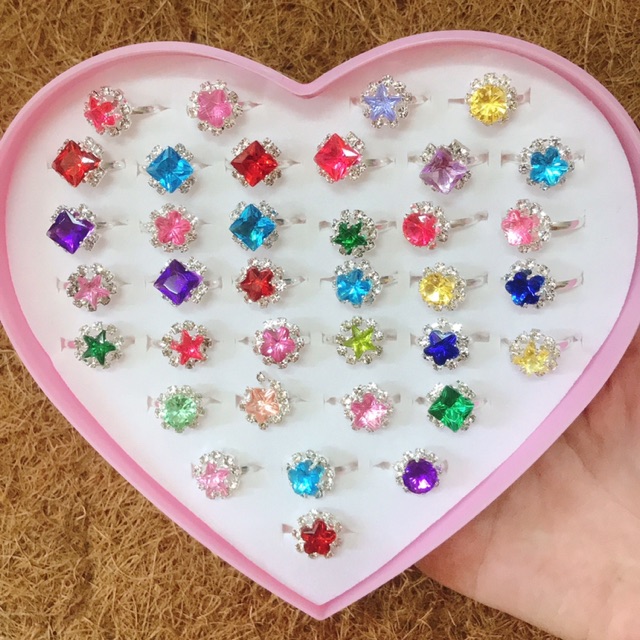 Hộp 36 nhẫn đính đá sắc màu