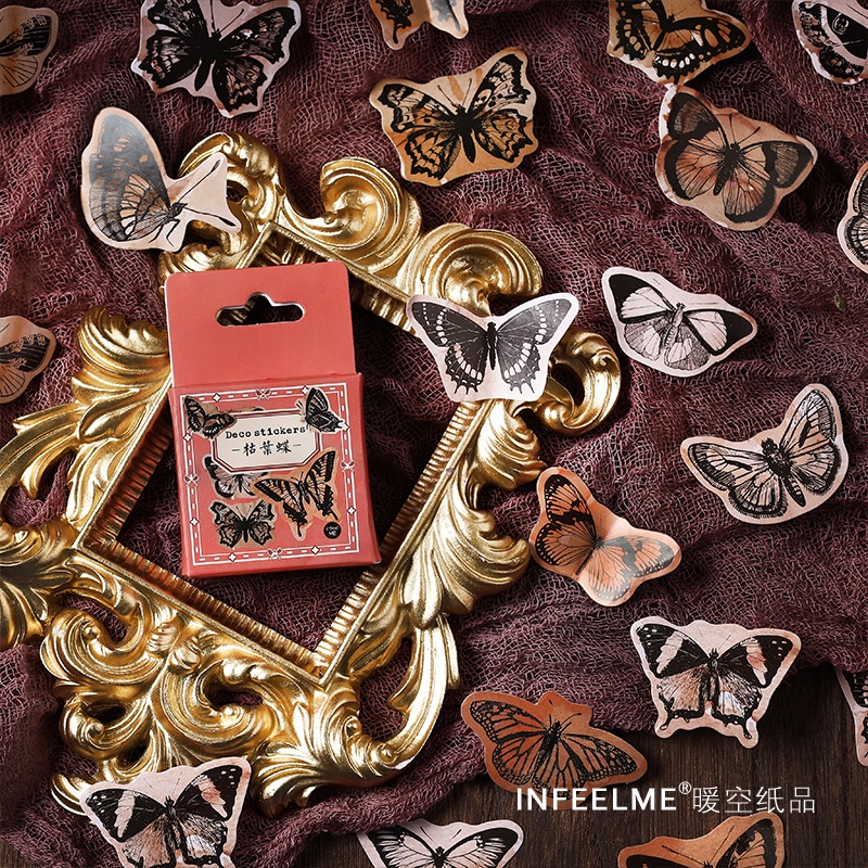 Hộp 45 Nhãn dán sticker Hình hoạ nâu cổ điển trang trí sổ tay bullet journal M590