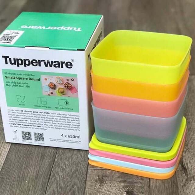 Dung tích: 650ml. 1L, 1.8L, 2.2L Ưu điểm và tiện ích: - Cấu tạo nắp hộp bảo quản thực phẩm vuông kín khí, kiểm soát lượng đối lưu của không khí trong và ngoài hộp giúp mùi của thức ăn sẽ không thoát ra ngoài - Chất liệu nắp dẻo, giúp đóng mở dễ dàng - Thiết kế hộp với các mép giúp dễ dàng kéo hộp ra khỏi tủ - Chất liệu nhựa có bề mặt nhám tay giúp cầm chắc tay hơn Công dụng: - Hộp nhựa Tupperware dùng để đựng các loại thực phẩm khô như bánh, kẹo, mứt các loại,..