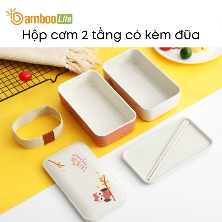 Hộp cơm 2 tầng kèm đũa làm từ sợi tre hiệu Bamboo Life BL174 phong cách Nhật, an toàn, tiện dụng, dễ dàng mang đi học